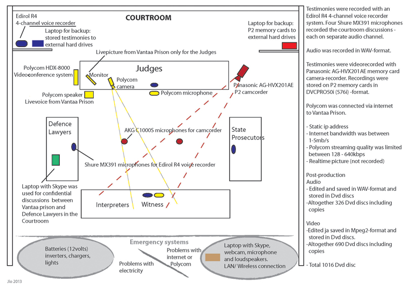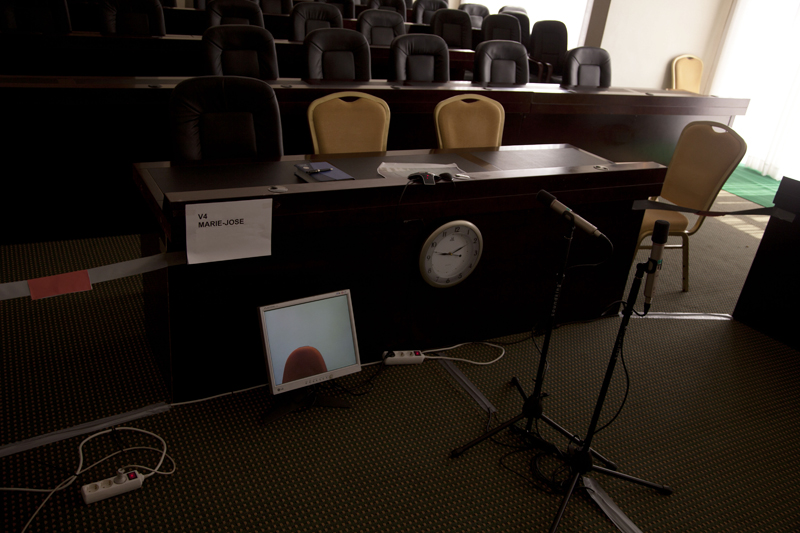 Als case study bij Model Court fungeert het proces tegen François Bazaramba, een naar Finland gevluchte Rwandees die vanuit de rechtszaal in het kleine Finse stadje Porvoo via een live teleconference-verbinding voor genocide berecht werd door Finse aanklagers en rechters in Tanzania en Rwanda. In de deels fictieve film RESOLUTION 978 HD (gemaakt in opracht van Gasworks, Londen) wordt vanuit het perspectief van een technicus een beeld geschetst van de complexiteit van de audiovisuele infrastructuur die de kloof tussen beide rechtsruimtes moet overbruggen.